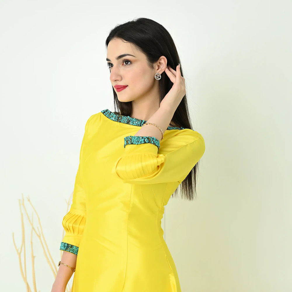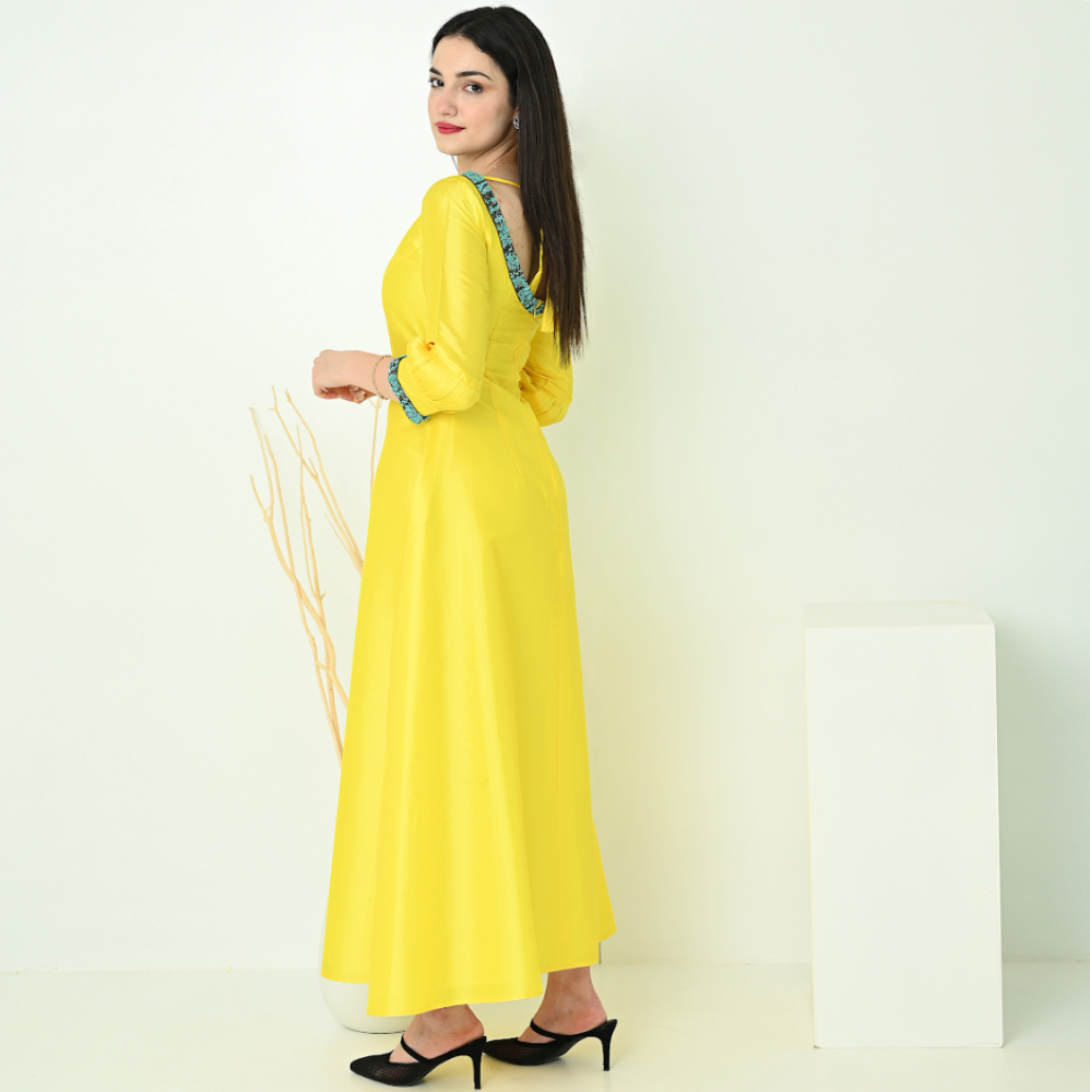 - اللون الأصفر الزاهي يعكس طاقة إيجابية ويضفي على إطلالتك لمسة من الحيوية والجمال.